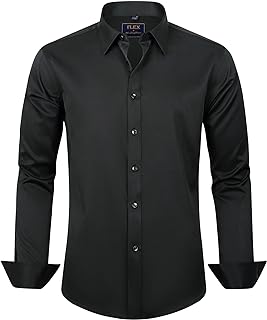 Men's Dress Shirts Solid Long Sleeve Stretch Wrinkle-Free Formal Shirt Business Casual Button Down Shirts